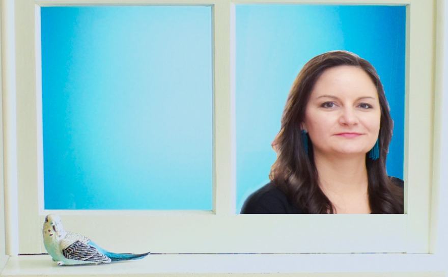 At the time I routinely shopped at yard sales with my mother, picking up interesting odds and ends, and at some point I bought a little bird sculpture. Finally I had a use for it. It was the perfect size to rest on the window’s ledge. But I knew it wasn’t just any bird who had flown in to sit on the windowsill. No, this bird had found his way through the window from the other side and had found freedom. So I designed a cutout of a cage and placed it on the inner side of the window pane, creating a shadow of the cage from which it had escaped. And now it meant so much more.