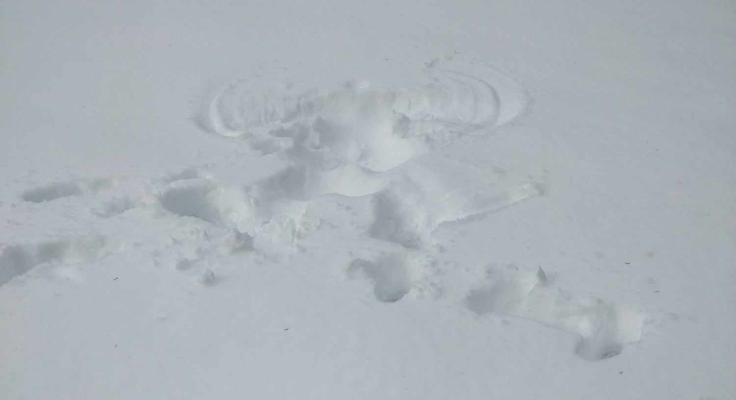. . . . . . So here I am, the last year of my thirties, reaching for my phone to take a picture of the snow angel. I have come with specific questions, and I know you are listening because when I reach for my phone, it’s 11:11. A few black crows dust snow off a branch.