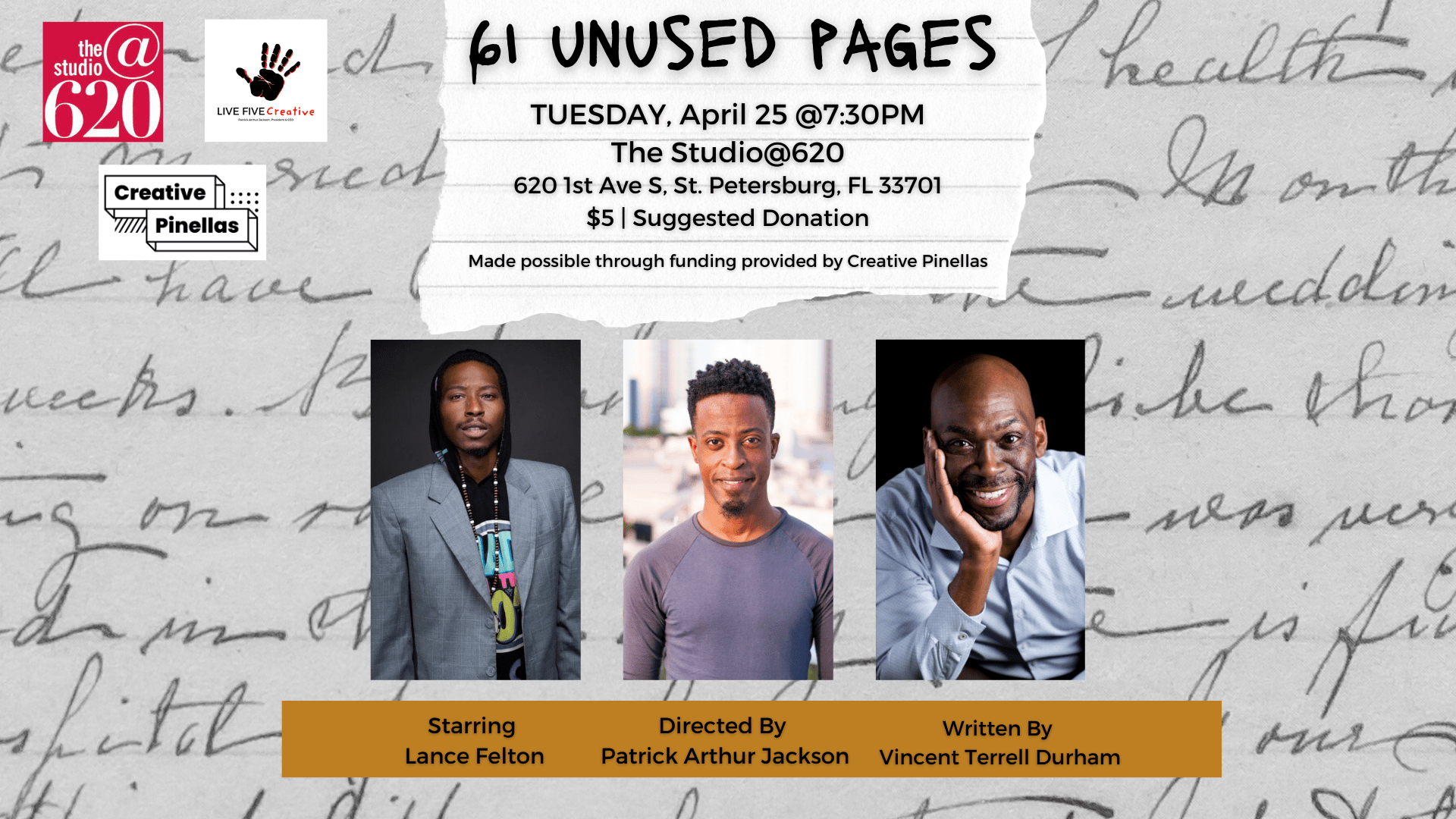 I had the unique opportunity to record a special episode of my podcast, The Black Hand Side. Enjoy this conversation with 61 Unused Pages playwright, Vincent Terrell Durham, actor Lance Felton and myself around themes of the show and our own journey and relationship with our fathers.