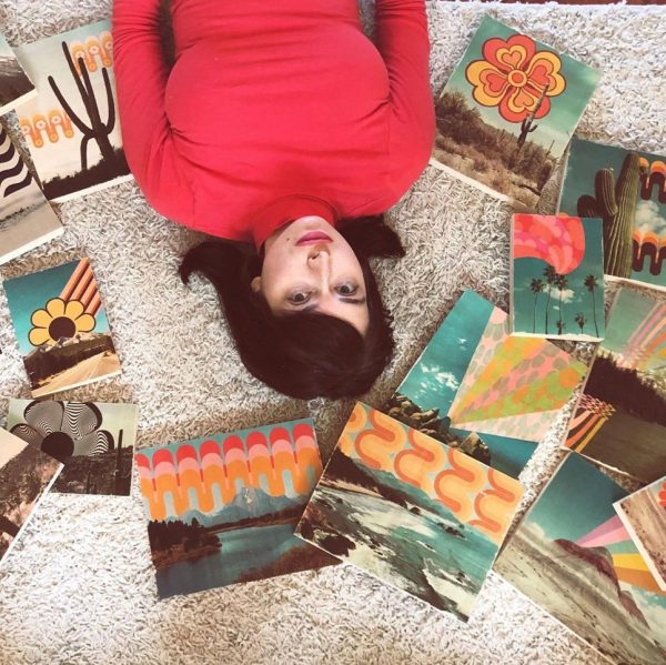 I’d say my current style has come about from inspiration by a number of female artists found simply by using social media (probably not a surprise for my generation). I first got into travel photography when I discovered Molly Steele. She captures a warmth that makes you ache to be outside, in the middle of nowhere. I shoot with my iPhone, an old Canon Rebel, and some random ’90s point-and-shoot 35mm camera. When I discovered Dana Trippe, she was shooting mostly portrait work but doing something I hadn’t really seen before—adding funky little painted designs to her photos. I was already making small handmade prints of my landscapes for the local [St. Pete] Indie Market and I started messing around painting little flowers on them. People loved it so much I began designing the images in Photoshop and only selling prints of those. It kind of took on a life of its own and I never went back to plain landscapes. I get a lot of color and design inspiration from Rachel Breeden of Circa78 Designs, Dawn Aquarius and Jenny Sharaf.