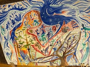 Lyrics of songs find their way into my paintings becoming part of them written into the painting or snippets become the titles of paintings. More so dreams motivate me to paint them or to paint to release from the reality of that dream but I wouldn’t consider dreams an art form or would you?