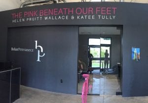 A couple of years later Katee and I collaborated again for The Pink Event: The Pink Beneath Our Feet, a fundraiser for the SunLit Festival. In this collaboration–hosted at the office of Behar+Peteranecz Architecture, whose fabulous digs added its own vibe — Katee’s artwork played off lines of my poems selected from my book, Pink Streets.