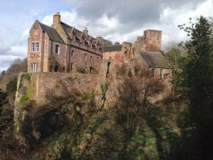 One cave serves as a doocot (“dove-cot”, or housing for pigeons and doves) with 370 compartments. There is a tradition that King Robert The Bruce once found shelter in the caves underneath it. The poet Sir William Drummond was born here, and later extended the castle.