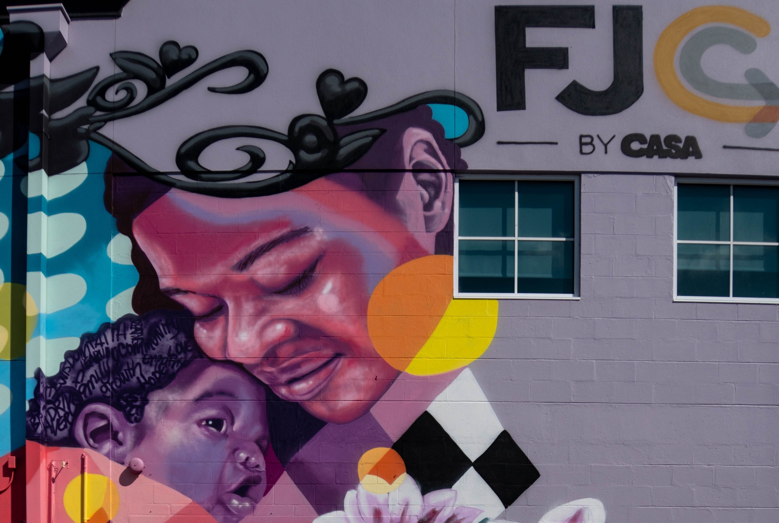 By incorporating diverse individuals, the mural shows the surrounding community who CASA serves. FJC by CASA is here to help anyone and everyone who’s been affected by domestic violence.