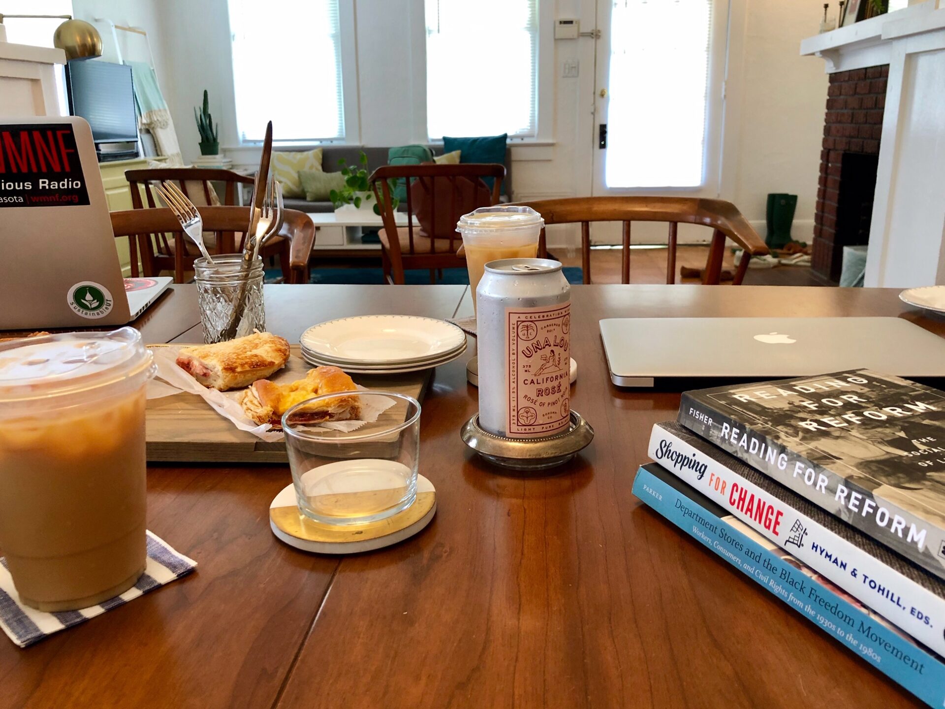 Something else that has done wonders for my productivity, as far as my own writing goes, has been my writing group. It was convened by some of my colleagues a couple of years ago with the goal of keeping us connected with our research and writing goals, even with our heavy teaching loads. This group has also been invaluable for me. Before COVID hit, we aimed to get together once a week for a couple of hours at a coffeeshop or colleague’s house. Pets were welcome, when we were in someone’s home. Everyone was free to do reading, research, or writing in whatever structure they desired, and we took spontaneous breaks to run thoughts by the group, chat about the day’s news, or have a snack. We also shared and workshopped work. For me, the group was a source of companionship, encouragement, feedback, and friendship. It also had a great impact on my productivity as a writer. In fact, the entirety of the last three pieces I’ve published was written during writing group.