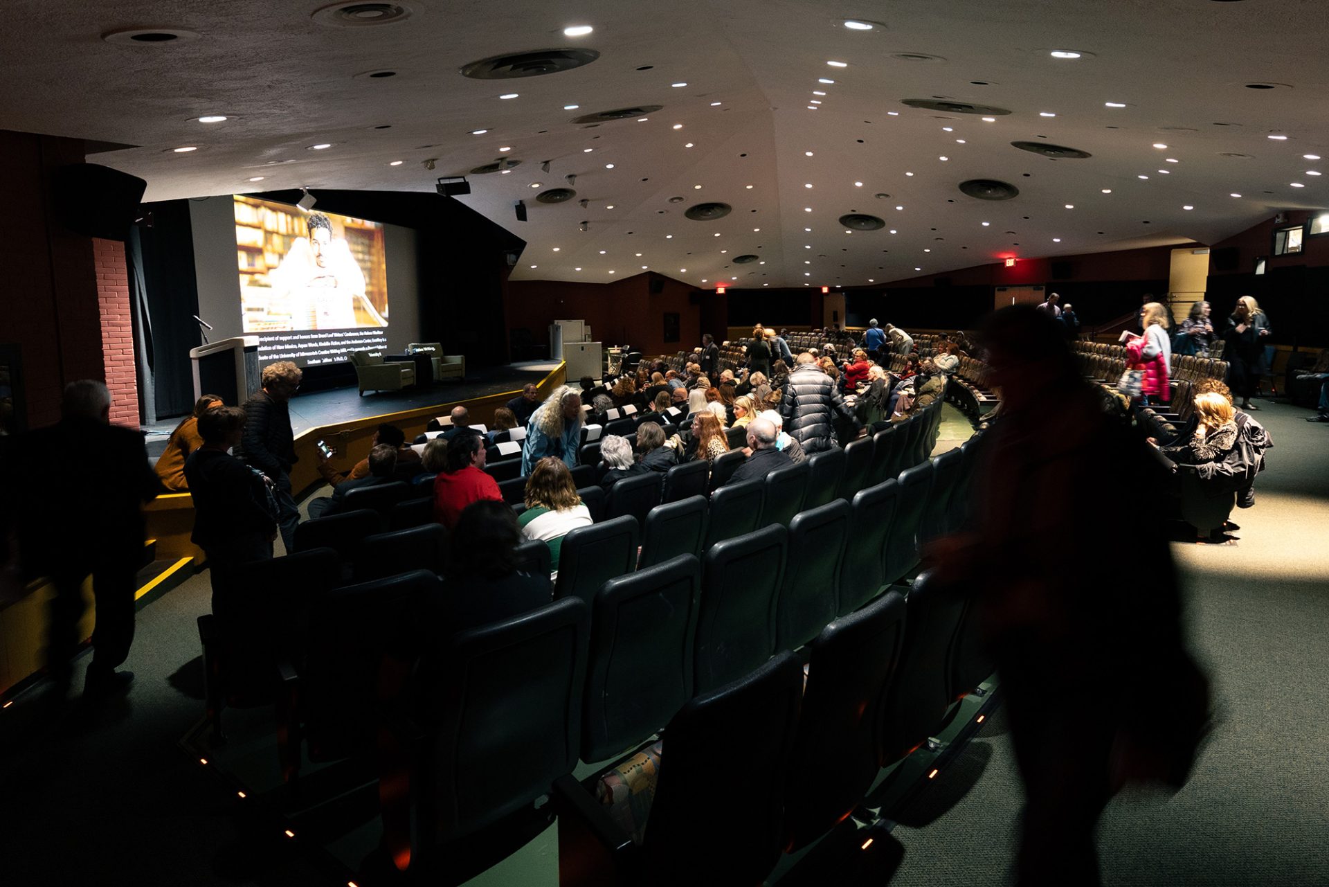 Conference attendees enter Miller Auditorium for an evening reading