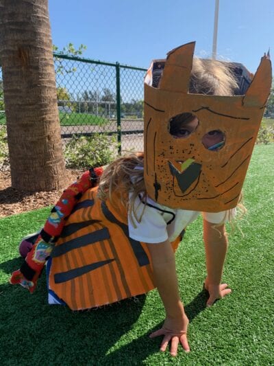 The kids were so excited after all the hard work that we had to find some creative way to show off all of our dedication and summary of our zoo study. We invited classes from other grades and classes of the siblings to join us in a display of pride. The audience gathered outside around the green space on our playground leaving room for a runway where each child could display his costume. The older grades lined up outside the fence to maintain a distance from each other. Another class in our same grade played musical instruments as the backdrop sound. I carefully announced each child and what their costumes were. They were quick down the green carpet showing off their animal-like prowess. Everyone then lined up and took a bow waving to the crowd of teachers, siblings and friends. The event was short but not short of amazing. You could see how proud and accomplished they all felt standing in front of the clapping crowd. I hope that is a feeling they will always remember.