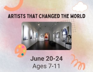 Week 3, June 20-24: Self Portraits – Students choose a famous artist and create a portrait of themselves in that artist’s style. Or Safari to Adventure – Students study the colorful painting style of Henri Rousseau and create art in his style, using acrylic paints, markers and colored pencils. Or Clay Camp (3rd–6th graders only) where students use the wheel and slab roller, learn glazing, pugging and decal work. Messy hands are just fine!