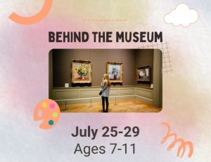 July 18–22, Art & Nature — designed for rising 1st to 5th graders. Join a safari through the art museum galleries to discover how animals, plants, weather, water and sky inspire artists. Campers will create nature-inspired artworks and learn how artists share the beauty of nature and help protect it. Please register by July 16.