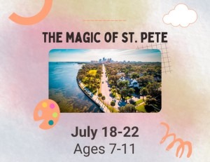 July 11–15, Art & Archaeology — Designed for rising 1st to 5th graders. Imagine time traveling Ancient Greece to Mesoamerica, and even right here in Tampa Bay! Explore artifacts, a mini archaeology site, and create a time capsule for a future dig. Please register by July 9.